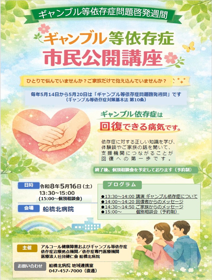 【お知らせ】ギャンブル等依存症問題 市民公開講座を開催します(5月16日(土)開催)